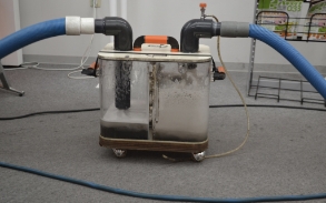 ポリッシャ―で繊維の表面の汚れをただ拭き取るだけのクリーニングや、見せかけだけの低出力のスチームクリーニングと違い、当社の業務用カーペットクリーニングマシン“トラックマウント&イノベンチャー”(九州にわずか数台)は、高温水高圧力洗浄スチーム(80℃~110℃)で繊維自体を洗濯しながら、分解した汚れを強力バキュームで瞬時に脱水!他とはパワーが桁違い!